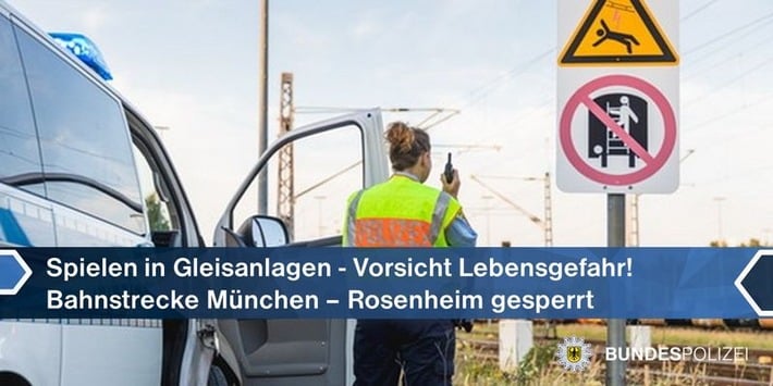 Am frühen Mittwochabend (17. August) musste die Bahnstrecke München – Rosenheim wegen der Meldung: „Kinder im Gleis“ gesperrt werden. Bundespolizisten griffen zwischen Baldham und Zorneding zwei Zehnjährigen auf, die sich im Gleisbereich befanden und zuvor auf einen Bahn-Strommasten geklettert waren.
