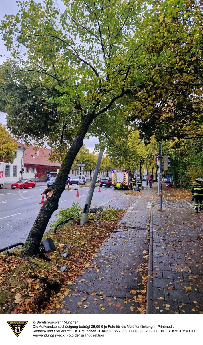 Er touchierte dabei einen Baum, drückte ihn in Schräglage. Anschließend wurde der Ampelmast ebenfalls umgeknickt. Dadurch fiel auch die Ampelanlage aus.