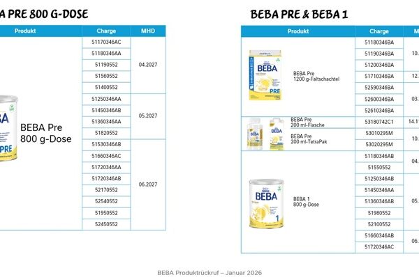 Frankfurt am Main (ots) – Nestlé leitet einen vorsorglichen Rückruf für bestimmte Chargen der Marken BEBA, BEBA expert HA, BEBA…