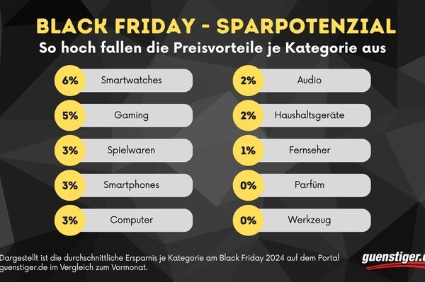 Hamburg (ots) – Die Rabatte am Black Friday fallen seit Jahren immer kleiner aus. Eine aktuelle Analyse des Vergleichsportals guenstiger.de…