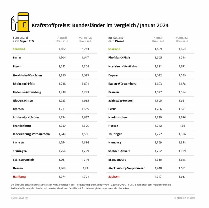 München (ots) – Das Saarland ist deutschlandweit zurzeit das Bundesland mit den niedrigsten Kraftstoffpreisen. Deutlich teurer ist Tanken momentan dagegen…