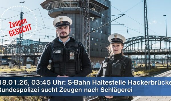 München (ots) – Am frühen Sonntagmorgen (18. Januar) kam es an der S-Bahn Haltestelle München Hackerbrücke zu einer massiven körperlichen…